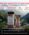 - Natural Mineral Source: Authentic pink Himalayan salt mined from ancient sea salt deposits in the Himalayan mountains.